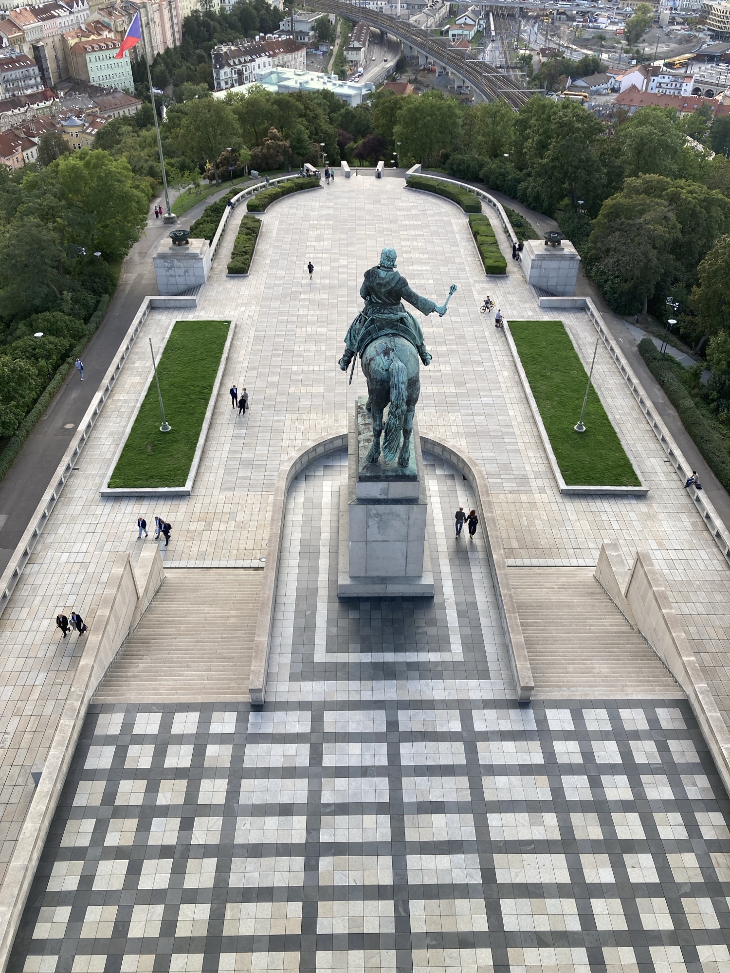 Vor dem Denkmal steht die beeindruckende Reiterstatue von Jan Žižka, die als eine der größten ihrer Art weltweit gilt.