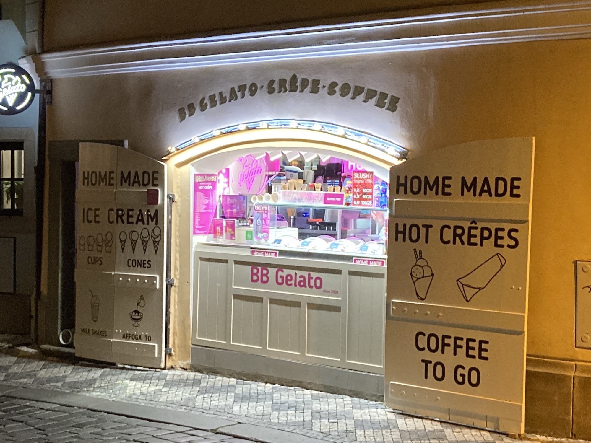 Das Eiscafé liegt in einer ruhigen Seitenstraße nahe der Karlsuniversität und nur wenige Schritte vom Altstädter Ringentfernt. Der kleine Verkaufsraum ist schlicht, modern und liebevoll gestaltet – perfekt für eine kurze Pause beim Stadtbummel durch die Altstadt (Staré Město). Viele Besucher holen ihr Eis auf die Hand und genießen es bei einem Spaziergang durch die engen Gassen oder entlang der Moldau.