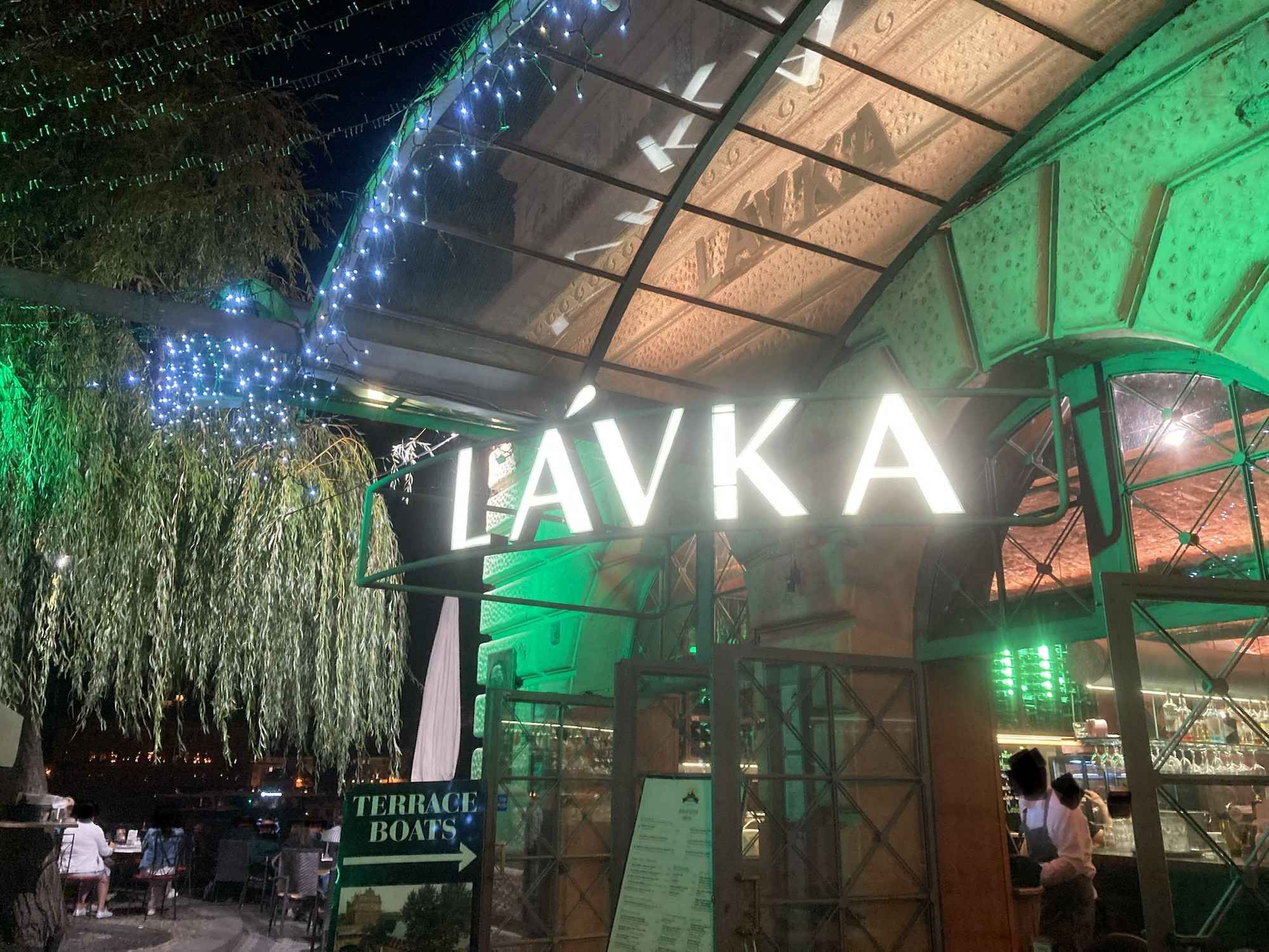 Im Lávka treffen sich Touristen, Einheimische und Nachtschwärmer, die das pulsierende Herz der Altstadt erleben wollen. Die Terrasse mit direktem Blick auf die Moldau und die Brücke ist tagsüber ein entspannter Ort zum Essen und Trinken – abends verwandelt sich der Bereich in eine stimmungsvolle Party-Location mit Musik, Lichtern und Blick auf das nächtliche Prag.