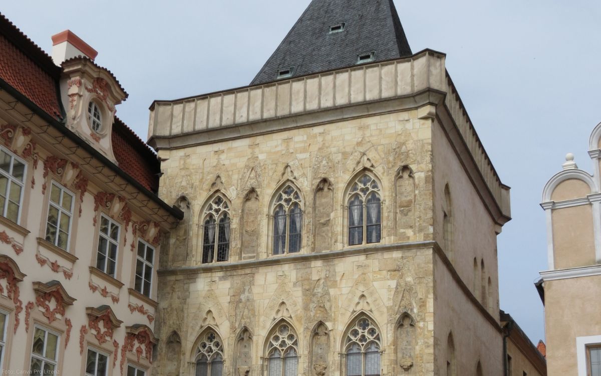 Direkt am Altstädter Ring erhebt sich eines der eindrucksvollsten Bauwerke der Prager Altstadt: das Haus zur Steinernen Glocke (Dům U Kamenného zvonu). Das außergewöhnliche gotische Stadthaus zählt zu den bedeutendsten erhaltenen Profanbauten des mittelalterlichen Prags und prägt mit seiner reich gegliederten Fassade, den schmalen Spitzbogenfenstern und den fein ausgearbeiteten Steinornamenten bis heute das Bild des historischen Zentrums. Errichtet im späten 13. und frühen 14. Jahrhundert, bewahrt das Gebäude seinen ursprünglichen Charakter in seltener Klarheit und vermittelt einen authentischen Eindruck der Prager Hochgotik. Seinen Namen verdankt das Haus einer steinernen Glocke an der Gebäudeecke, die bereits im 15. Jahrhundert erwähnt wurde und bis heute als markantes Erkennungszeichen dieses Ortes gilt.