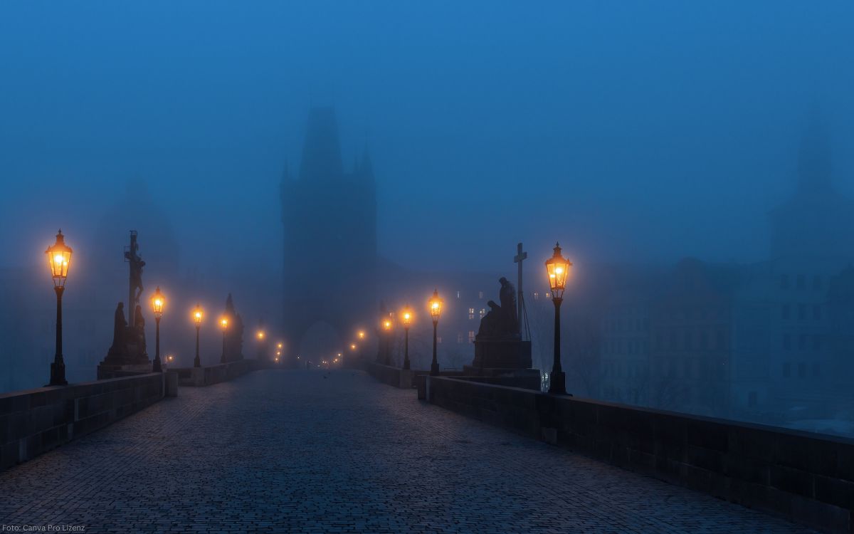 Im November zeigt sich Prag von seiner stilleren, aber atmosphärisch besonders reizvollen Seite. Das Wetter ist meist kühl und klar, mit Temperaturen zwischen 3 °C und 8 °C am Tag, während es nachts bereits leichten Frost geben kann. Der allgegenwärtige Nebel über der Moldau (Vltava) taucht die Stadt in eine mystische Stimmung – besonders am frühen Morgen rund um die Karlsbrücke (Karlův most) oder beim Blick vom Hradschin / Prager Burg (Pražský hrad) über die Dächer der Altstadt.