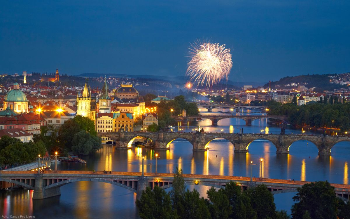 In Prag gibt es auch zeitlich begrenzte Übertragungen von besonderen Events. So läuft jedes Jahr im Dezember der Weihnachtsmarkt auf dem Altstädter Ring – und seit 2022 kannst du ihn live im Internet verfolgen. Der Livestream kommt direkt vom Rathaus-Turm und zeigt geschmückte Stände, Lichterglanz und die 20–27 Meter hohe Weihnachtstanne, die bis Mitternacht leuchtet und stündlich eine Lichtshow bietet. Im Frühling locken die Ostermärkte, besonders der auf dem Altstädter Ring, der laut Landesecho 2025 zu den „beliebtesten und bekanntesten Märkten“ ganz Tschechiens gehört. Obwohl diese Frühlingsmärkte meist keine eigene Webcam haben, kannst du die Saisonstimmung auf den Platz per Livecam antippen und dich an bunten Dekos und Galerien erfreuen. Und zum Jahreswechsel? Prag glitzert an Silvester – die Stadt zündet ein offizielles Feuerwerk über der Moldau. Wer keinen Platz in der Menge ergattert, kann zumindest online mitfiebern: Kameras auf oder nahe der Karlsbrücke, auf dem Burgberg oder auf Petřín zeigen dir das nächtliche Spektakel.